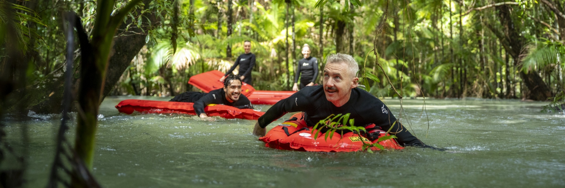 Drift on the Mossman River under the canopy of the World Heritage-listed Daintree Rainforest on a guided River Drift Experience with ecotourism-certified Back Country Bliss Adventures. Your experienced local guide will collect you from your accommodation to drive 20-minutes north of Port Douglas. On arrival, don a wetsuit and grab your floating river sled then follow your guide through the shallow or dry riverbed that serves as your path upstream. Enter the cool water to drift with the river’s calm currents taking in the tranquillity of this centuries-old natural environment. Tour photos are included on this immersive experience that can be booked for groups of up to 30 guests. Speak to the team for options for larger groups.